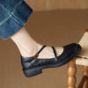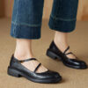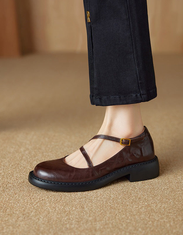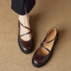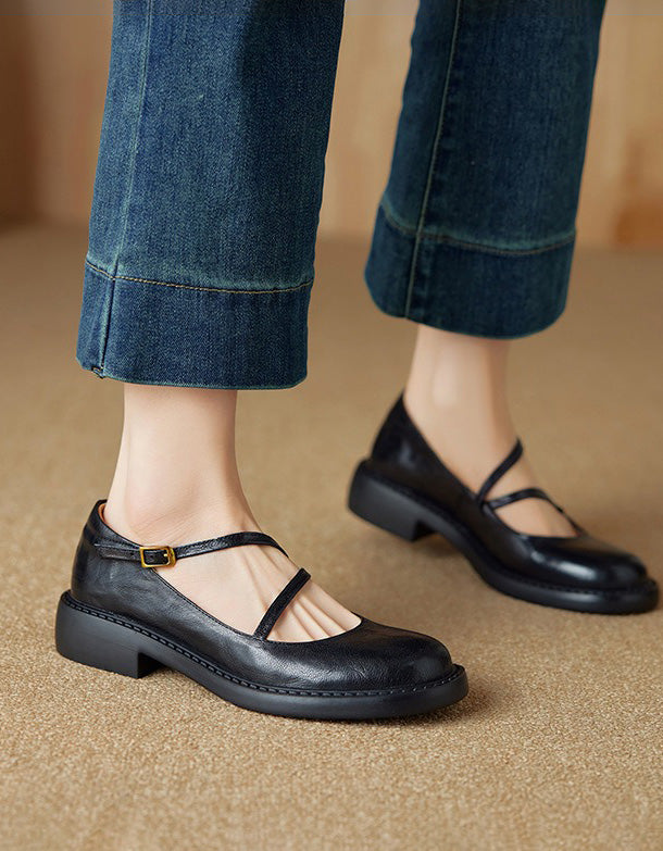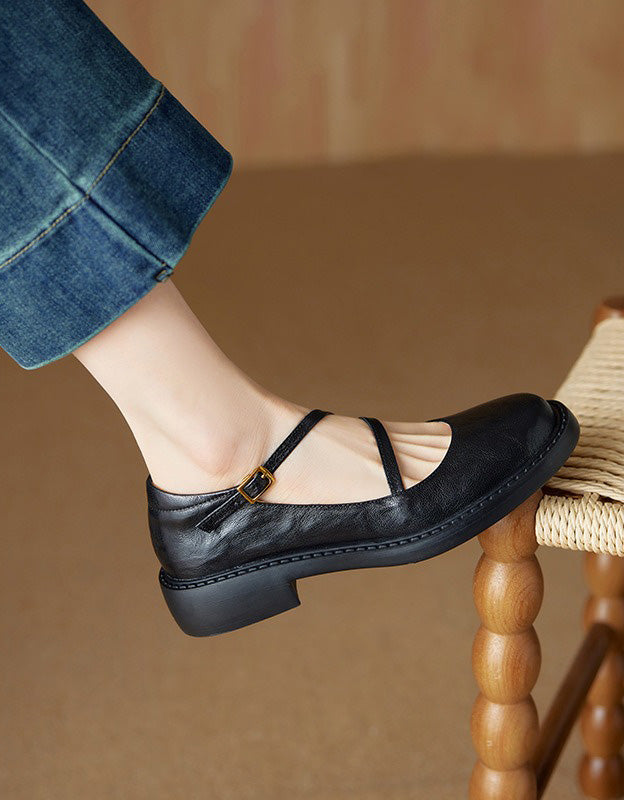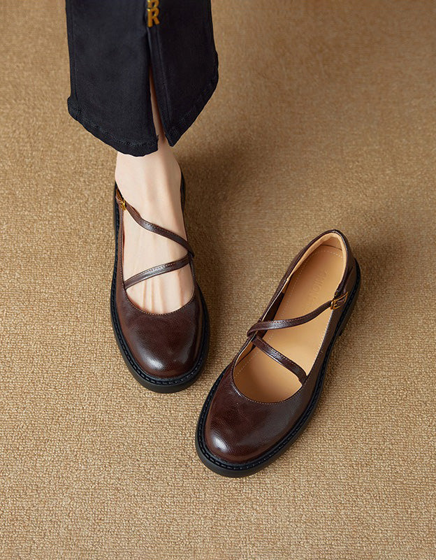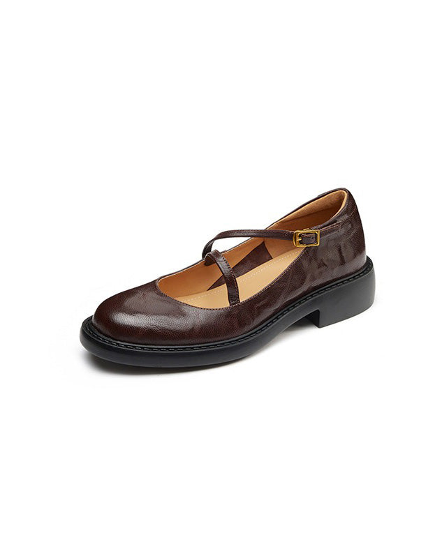 Real Leather Cross Buckle Mary Jane Shoes