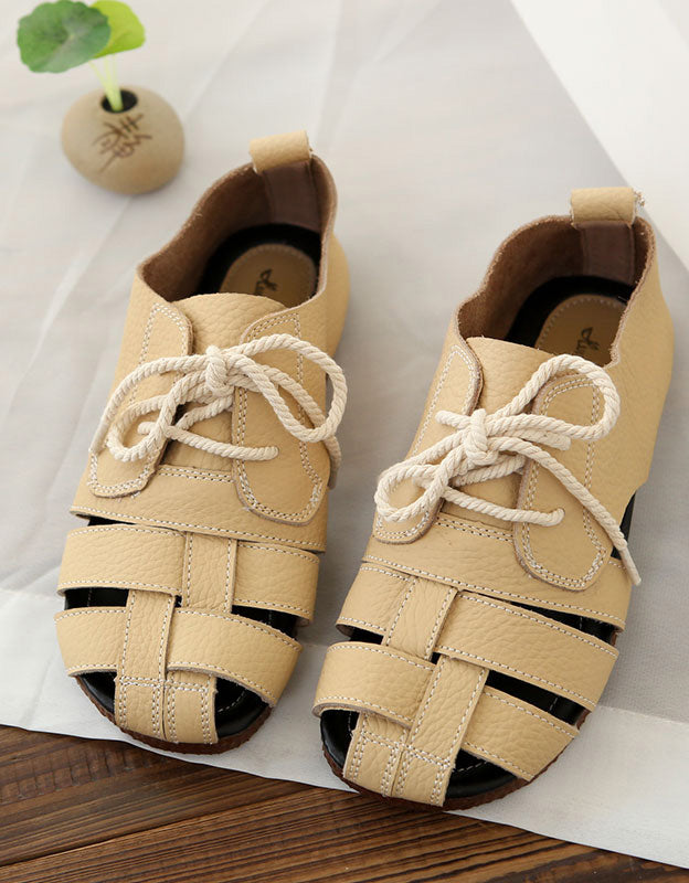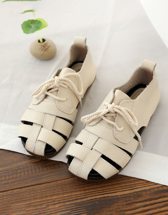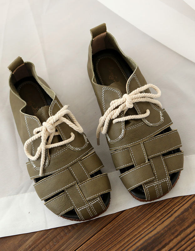Summer Breathable Leather Woven Retro Flat Shoes